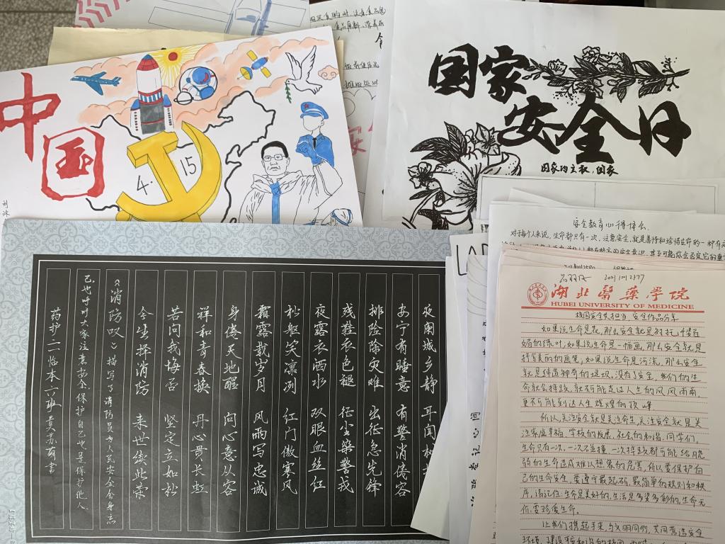 提交一次国家安全教育主题作品。在学院师生中广泛开展国家安全主题的作品征集活动,教师和学生积极参与,提交创意作品,作品形式多样,有书法、有绘画、有心得体会等。