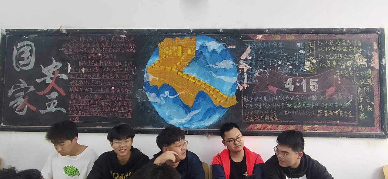 制作一期国家安全教育主题板报。在学院宣传栏展出了一期国家安全教育宣传橱窗板报;在学院班级晚点名教室中,制作了一期主题黑板报,积极为师生宣传国家安全相关知识,增强师生的国家安全意识和爱国意识。