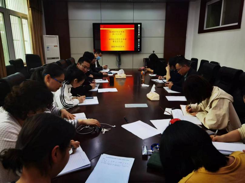 本网讯(通讯员 徐臣利)4月21日下午,基础医学院第六党支部开展了4月份主题党日活动。本次活动的主题是深入学习贯彻全国“两会”精神、统筹疫情防控和学校事业发展。第六党支部党员教师、党外人士及入党积极分子参加活动。活动由党支部书记姚柏春主持,分党委委员王配军全程参加了主题党日活动及党员大会。