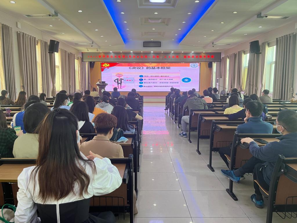 本网讯(通讯员 昝启均)2022年4月21日下午,基础医学院分党委和马院、人文学院分党委联合开展了党员集中轮训4月集中培训。此次培训的主要内容是深入学习领会党的十九届六中全会精神,由马院、人文学院分党委书记赵万红同志主持。思政课部主任李亚博士受邀作了题为《以史为鉴,走好新的赶考路》的辅导报告。