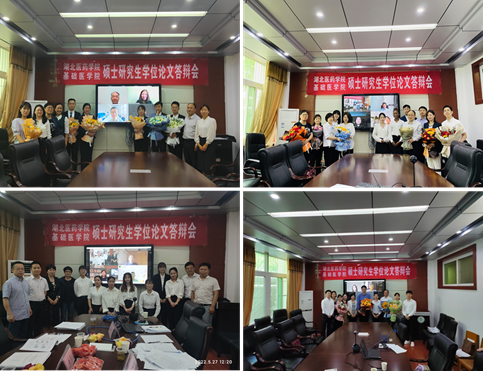 本网讯(通讯员 张豪)5月21日-28日,在学院一楼会议室,基础医学院顺利完成2019级硕士研究生的毕业答辩工作。根据疫情防控要求,本次答辩采用线上线下相结合的模式进行,专家们根据实际情况进行线上或线下评审,所有的研究生的汇报都在线下进行。参加本次答辩的硕士毕业生有18人,分成四组进行答辩。病理学与病理生理学答辩一组分别邀请了青岛大学王建勋教授(病理学与病理生理学一组专场答辩主席)、武汉大学钟波教授、同济大学成昱教授,病理学与病理生理学答辩二组分别邀请了同济大学张玉珍教授(病理学与病理生理学二组专场答辩主席)、上海大学肖俊杰教授、广西医科大学潘尚领教授,病原生物学与免疫学答辩组分别邀请了中科院上海巴斯德研究所江陆斌教授(病原生物学专场答辩主席)、武汉大学刘万红教授(免疫学专场答辩主席)、中国人民解放军陆军军医大学徐文岳教授,人体解剖与组织胚胎学答辩组分别邀请了华中科技大学孙书国教授(人体解剖与组织胚胎学专场答辩主席),首都医科大学周德山教授,桂林医学院祝宁侠副教授担任答辩主席或委员。研究生导师及其他年级的研究生旁听了此次答辩会。