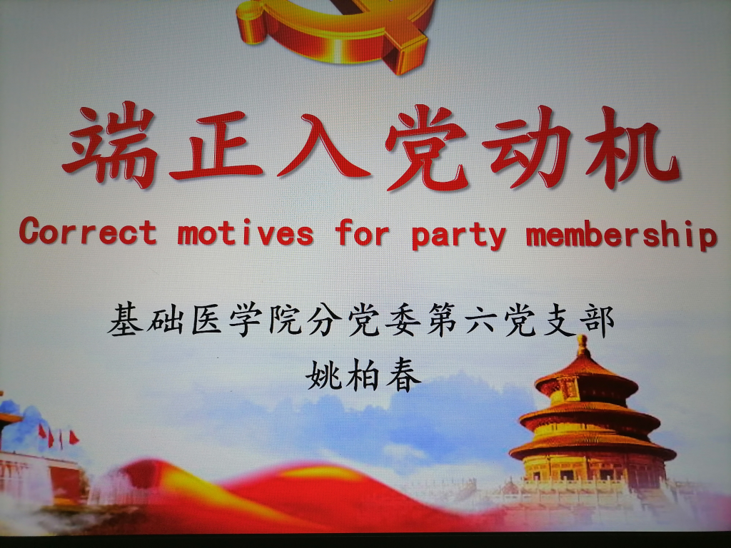 接着,姚柏春教授以“端正入党动机”为题,讲了专题微党课。其主要内容包括:什么是正确的入党动机,为什么要端正入党动机,如何在实践中不断端正入党动机,如何积极创造条件,以实际行动争取早日入党,党员义务和日常工作实际相结合。他强调,树立正确的入党动机是争取入党的首要问题,只有对党有正确认识,才有正确的入党动机;正确的入党动机是忠诚地信仰共产主义,把最终实现共产主义社会制度作为自己的最高理想,决心为了壮丽的共产主义事业奋斗终身,全心全意为人民服务;他还特别指出,端正入党动机,不是入党前一时的问题,而是一辈子的事情。