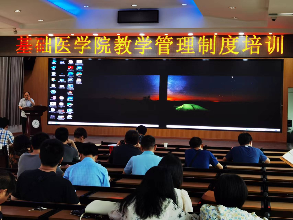 本网讯(通讯员 丁演鹂)为规范教师从教行为,维护正常教学秩序,保障学生合法权益,培养全面发展医学生,7月2日上午,基础医学院在六楼会议室对全院教职工开展了教学管理制度培训。院领导、分党委委员、管理人员、各科室主任、副主任及教学秘书参加会议,其他教职工通过腾讯会议同步参加线上会议,会议由院长唐俊明主持。