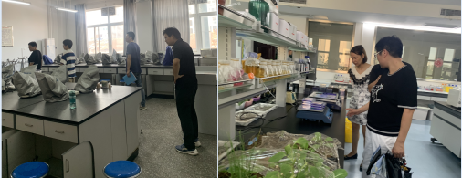 张秋芳一行重点检查了危化品的保存地点,要加强对于强酸、强碱等危化品的密封保管,强调危险化学品管理的重要性。同时还现场检查了实验室和研究所的环境卫生、各种设备和仪器的管理。提醒老师们离开实验室前要彻底切断电源,关闭好门窗,以确保安全。另外,张秋芳还建议实验室负责人要落实并制定相关的安全防护设施、应急处置预案等,以便发现问题时可以及时整改。