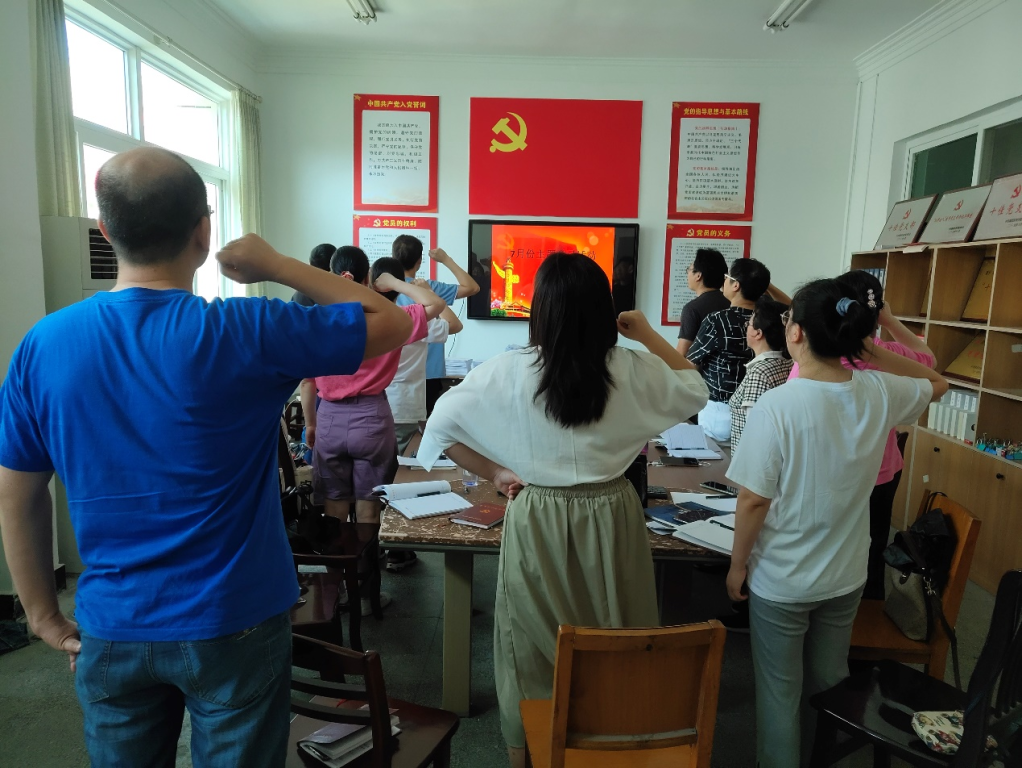 首先,全体党员同志起立奏唱国歌,在刘志新的带领下重温了入党誓词。按照安排,谢祎婷领学习近平在湖北武汉考察时的讲话精神及庆祝香港回归25周年大会上的讲话,就科技创新、疫情防控等问题谈了自己的深刻感受,香港是我国不可分割的一部分,应团结一心,共克疫情时艰。接下来,关玮领学中共中央关于党的百年奋斗重大成就和历史经验的决议,党的百年奋斗的成绩有目共睹,从积贫积弱的旧社会到温饱、小康,从根本上改变了中国人民的前途和命运,才有了今天的和平年代,要珍惜来之不易的幸福生活,继续发扬艰苦奋斗的优良传统。余春芳领学全市传达学习贯彻省第十二次党代会精神暨党员干部下基层察民情解民忧暖民心实践活动推进会精神。李健结合历史事实领学了习近平总书记在中共中央政治局第四十次集体学习时的重要讲话精神,说明了反腐败的重要性,若不对腐败痛下狠手,将会威胁和动摇共产党的执政根基。