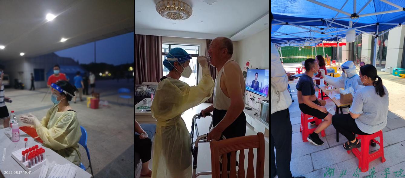 时间拉回至2022年8月,我市发生新型冠状病毒输入性疫情。此时,正值高温酷暑天气。8月13日,十堰市实施临时性管控措施,整个城市迎来了严峻的疫情防控大考。“艰难方显勇毅”,基础医学院研究生和老师们第一时间响应学校号召,毅然决然地投身于疫情防控的紧张战斗中去,积极参加核酸采集队,流调队,青年突击队、党员志愿服务队。志愿者们不分昼夜,奋战在郧阳区、茅箭区、张湾区的核酸采集点和医学隔离点等抗疫一线。吴兆猛、谢继臣、刘航志、赖鹏舒、桂建军、耿玲珺、刘文强等同学,不忘医学生誓言,不顾危险,主动请战,前往当时疫情最严重的郧阳区开展核酸检测、流调等工作。志愿者们从刚开始青涩的操作手法,到后来的秩序维护、信息录入、核酸采集等每个环节规范有序、游刃有余。平均每人每天采集700余份咽拭子,有力的支援了十堰市的疫情防控工作。