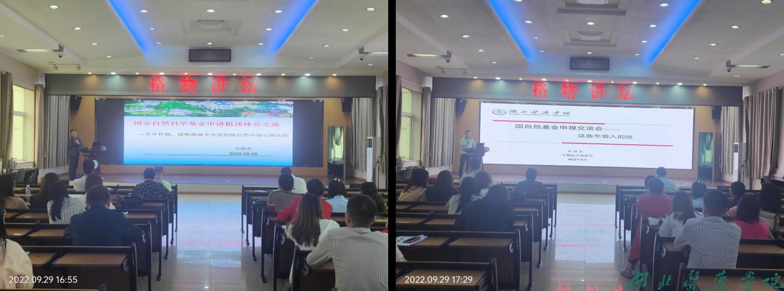 汪静杰博士的讲座题目是“多年折戟,屡败屡战幸有获的国自然申请心路历程”。叶祥东博士的讲座题目是“国自然基金申报交流会——这些年我入的坑”。汪博士和叶博士博士成功获批2022年国家自然科学基金项目,两人成功申报的经历非常具有代表性。两位博士分别从选题、项目创新性、科研基础的准备、申报内容的精炼、项目书撰写等方面分享了自己的经验。