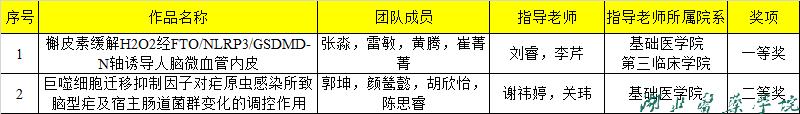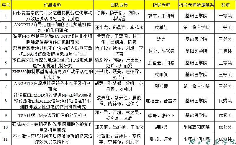 我校有21支队伍参加本次中南赛区的比赛,我校在中医药赛道荣获一等奖1项,三等奖3项;在基础临床赛道荣获一等奖1项,二等奖2项,三等奖5项,优秀奖4项;在预防医学和法医学赛道获一等奖1项,二等奖1项,详见获奖名单。