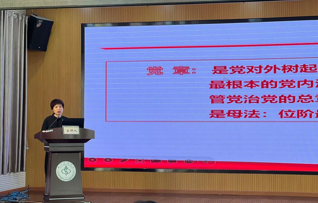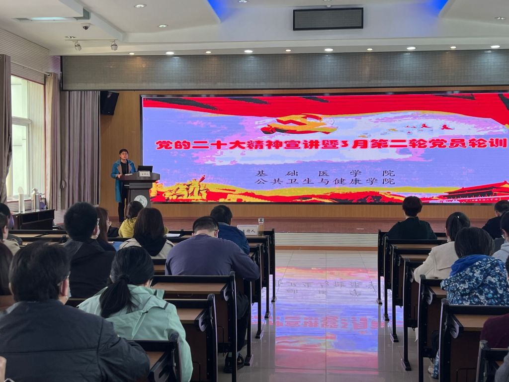 本网讯(通讯员 黄晶晶 李洋洋)根据学校党的二十大精神轮训安排,3月30日下午,校党委常委、副校长严世荣为师生讲授党的二十大精神宣讲暨3月第二轮党员轮训专题党课,对党的二十大新修订的党章进行重点学习。基础医学院、公共卫生与健康学院全体无课教师及学生党员参加,活动由基础医学院分党委书记张秋芳主持。