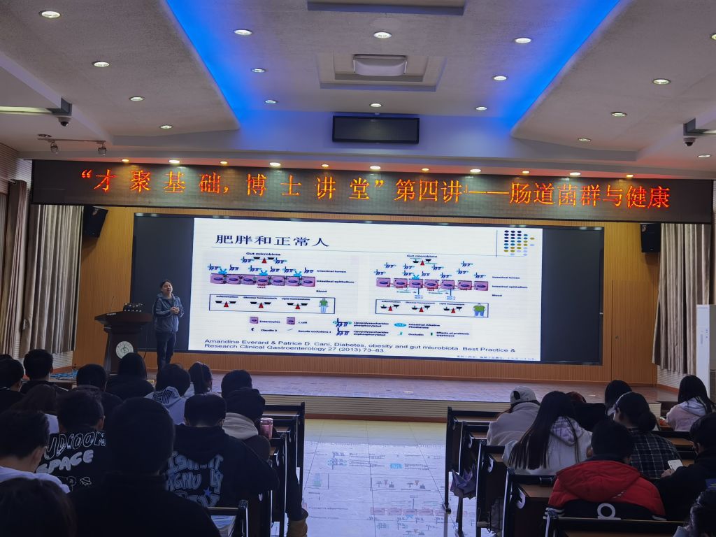 本网讯(通讯员 丁卓杭 饶悦)4月23日下午5点,由基础医学院分团委、学生会主办的“才聚基础,博士讲堂”系列第四讲“肠道菌群与健康”在1号楼六楼多功能厅举行,基础医学院全体本科生参加,本次讲座由基础医学院第一党支部书记汪静杰老师主讲。