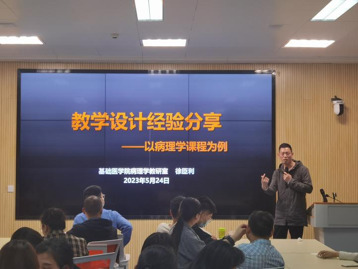 接下来由吴艳、李丹丹、徐臣利三位骨干教师分别以“国家级一流课程申报”、“青教赛——教学设计经验交流”、“教学设计经验分享——以病理学课程为例”为题分享教学心得。他们结合课程内容进行精心的设计和充分的准备,从课堂的引入、课程思政与课堂教学的融合、师生互动等方面,将生动活泼的教学案例、特点鲜明的课程设计及新颖多样的教学手段逐一呈现。