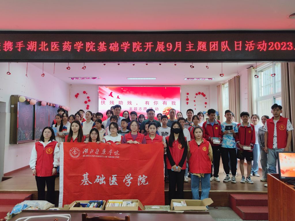 本网讯(通讯员 李正涛 饶悦)9月22日下午3点,基础医学院青协分会携手十堰市特殊教育学校,在特校举办了“把书种下,让爱发芽”主题公益捐书活动暨交接仪式。十堰市特殊教育学校副校长王勇、教务处主任刘运良、在校师生与基础医学院党委副书记付勇、辅导员饶悦、青协分会志愿服务队一同出席本次交接仪式。