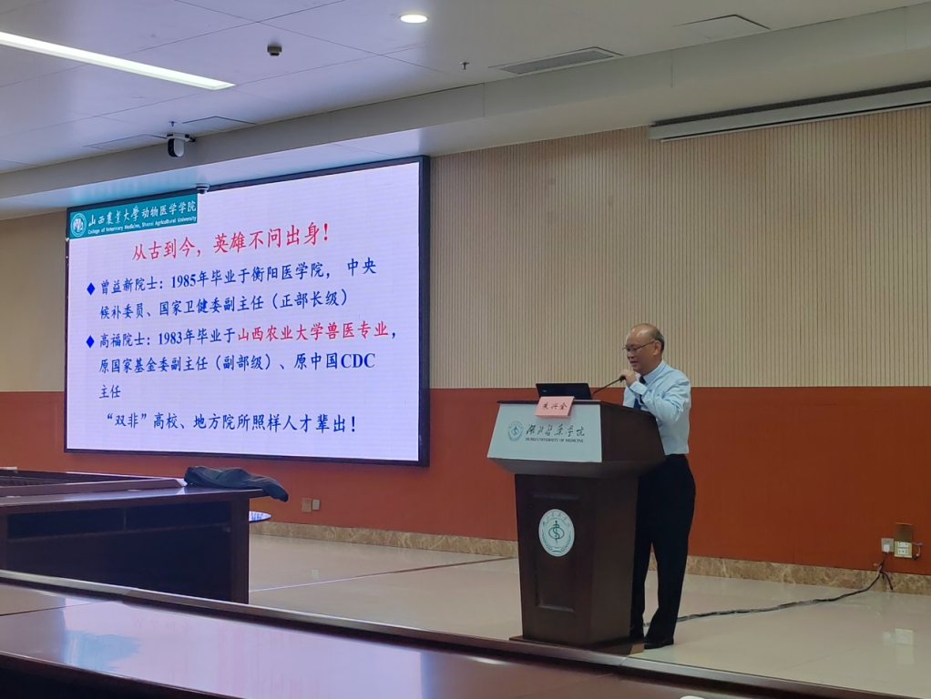 本网讯(通讯员 连荫杰 赵燕清 张豪)2023年11月4日上午,应基础医学院唐俊明院长的邀请,山西农业大学朱兴全教授做客基础医学院格物讲坛。讲座由校党委常委、统战部部长谭艳主持,基础医学院院长唐俊明、副院长李健,及学院无课教师、研究生、本科生200余人参加了此次讲座。