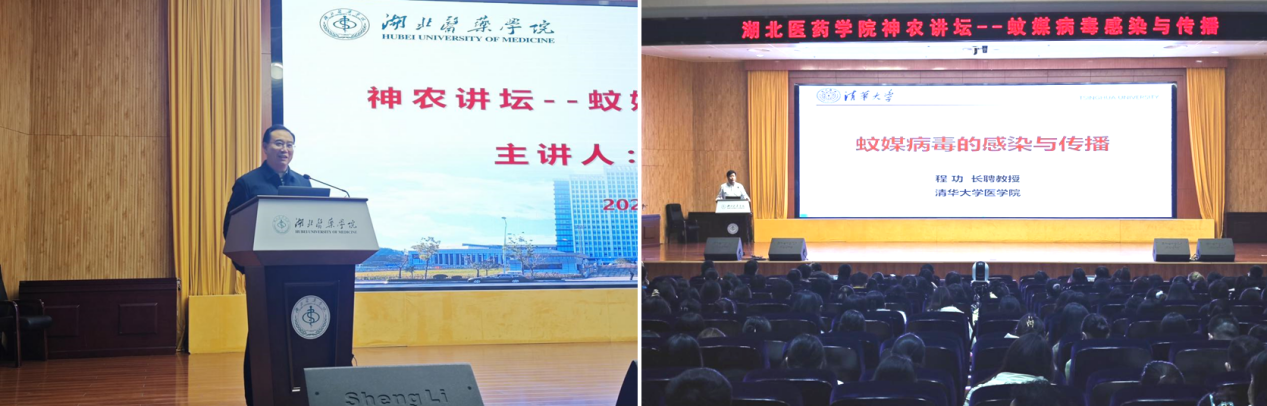 本网讯(通讯员 张豪)12月2日下午,清华大学程功教授应邀做客我校神农讲坛,为师生作了题为《蚊媒病毒感染与传播》的学术报告。此次讲坛由基础医学院承办,湖北医药学院党委副书记、校长王云甫教授主持,学院全体无课教师和全校研究生、本科生800余人参加。