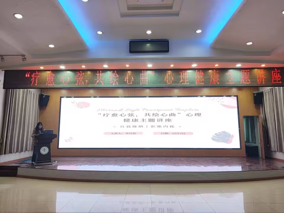 活动开始,李诗怡以“自我接纳,拒绝内耗”为主题切入,解释自我接纳的含义,用六个方面指出何为真正的自我接纳,罗列出五种容易出现自我内耗的群体。紧接着,播放了《动物行为》短片,通过和几位同学的互动交流引发同学们对自我接纳的思考,引起他们对自身心理健康的关注,并分享给同学们四种自我接纳的方法。最后,以人民日报的一篇文章《接纳自己的不完美》为总结,希望同学们能学会与自己和解,减少内耗。