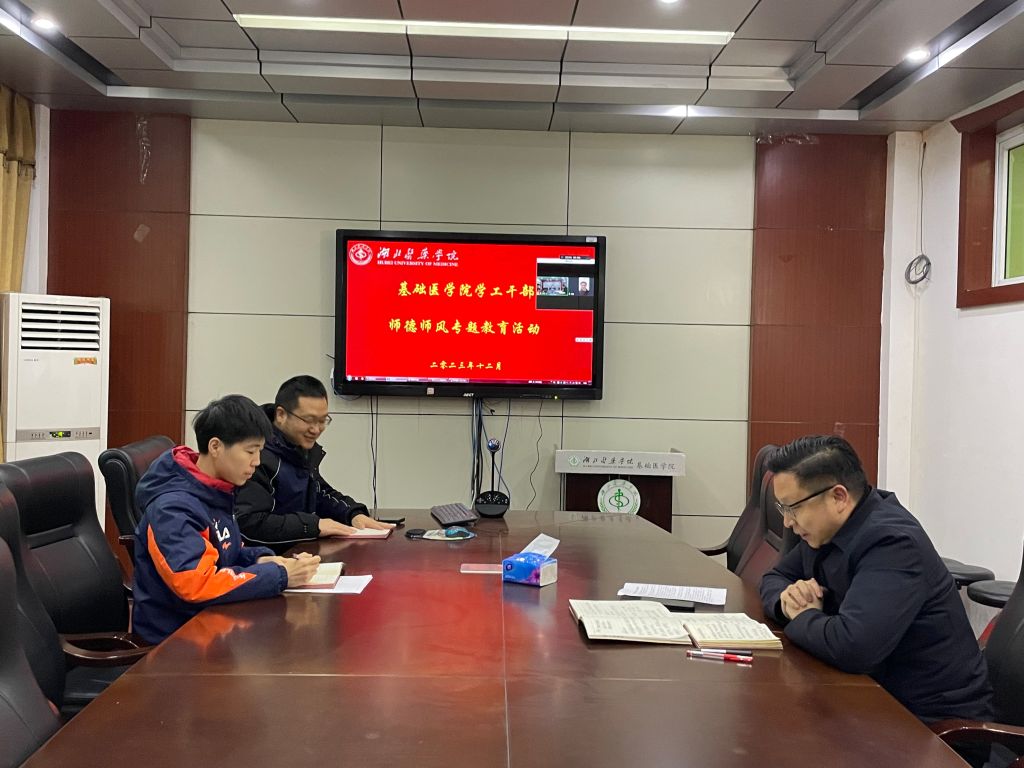 本网讯(通讯员 饶悦)12月21日上午,基础医学院联合第六临床学院以线上线下相结合的方式,在1号楼1楼会议室开展学工干部师德师风专题教育会议。