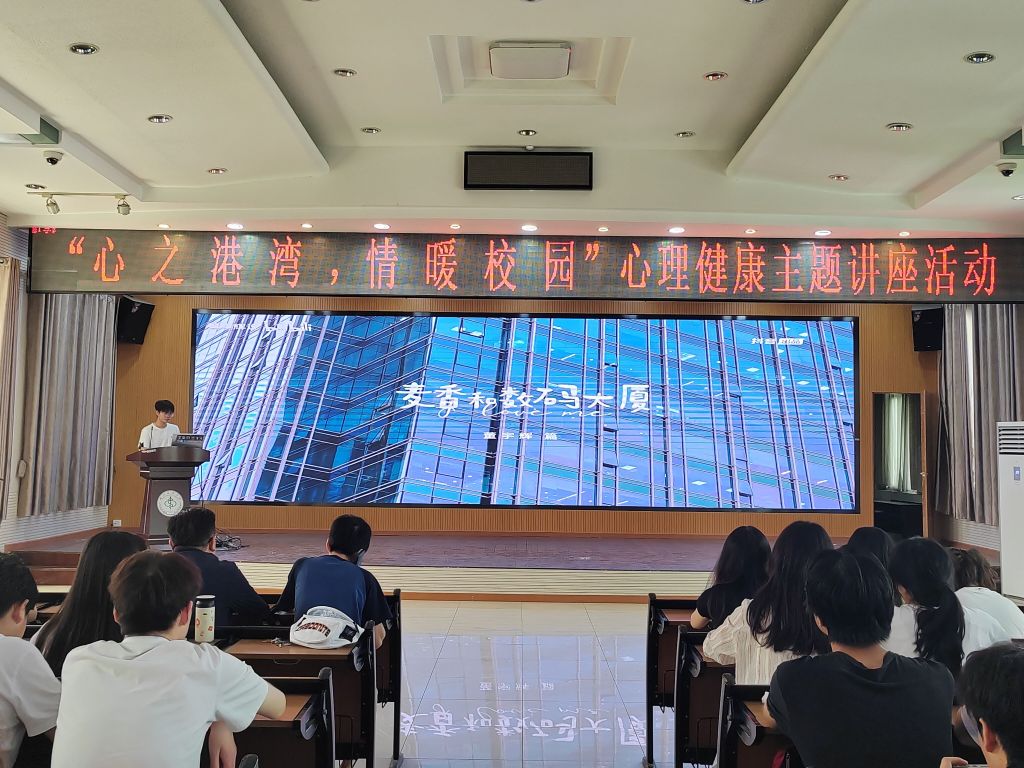 讲座伊始,蒙含阐述了心理健康对于个人成长和社会发展的重要性,心理健康不仅关乎个人的幸福感和生活质量,更是社会和谐稳定的重要基石。随后,他为同学们播放了央视网发布的“青春中国”系列思政课,分享了心理健康自我评估的方法以及干预策略。最后,付勇进行讲话,他通过多个生动具体的案例,为大家展示了心理问题的表现形式,提醒大家要警惕一些常见的心理问题,并呼吁关注自己的心理健康状况,及时寻求专业的帮助和支持。