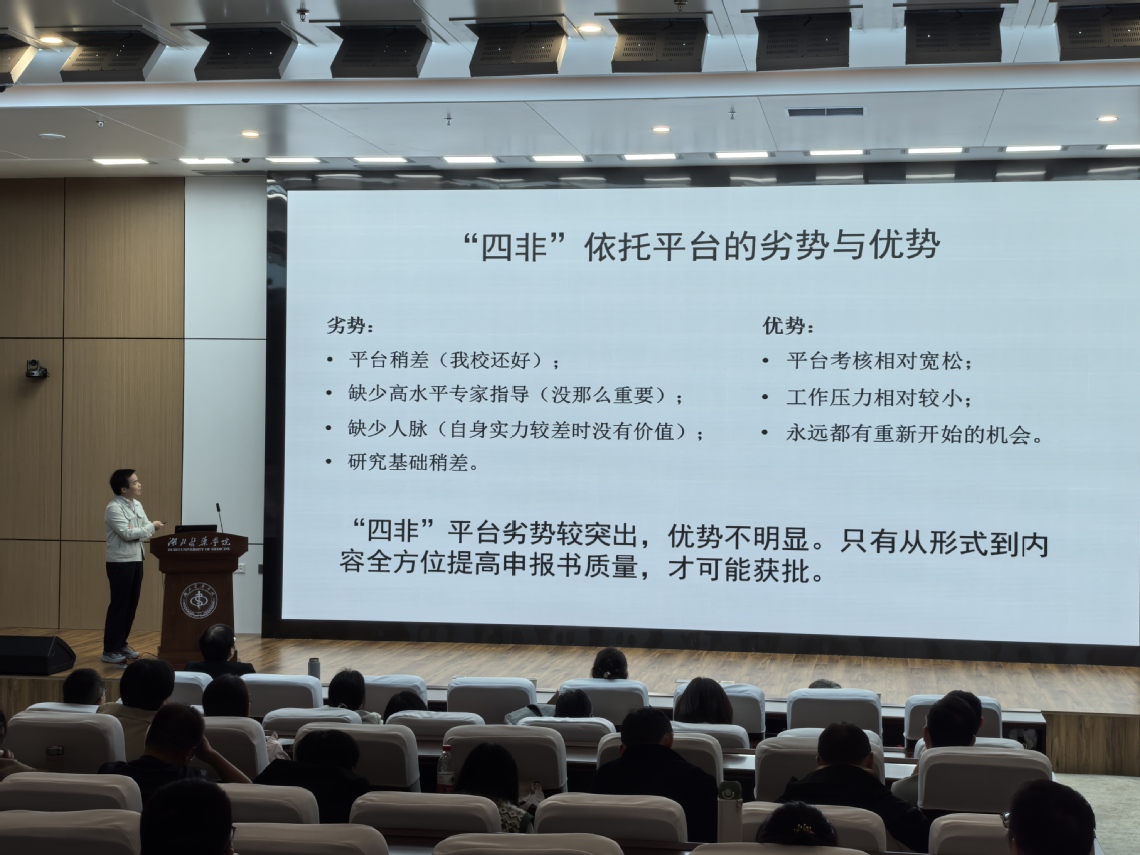 会议同时邀请孙小明教授做国基金申报经验分享,他以“四非院校青年教师如何突破国自然”为题,倾囊相授。孙教授结合自身从中标青年基金、面上项目多次折戟再到两度成功“上岸”并参与评审的真实历程,从前期积累、科学选题、标书撰写技巧,到以何种姿态寻求同行专家帮助等关键环节,分享了详尽而真挚的心得体会,其激情洋溢、毫无保留的讲述令在场青年博士教师深感共鸣,受益匪浅。