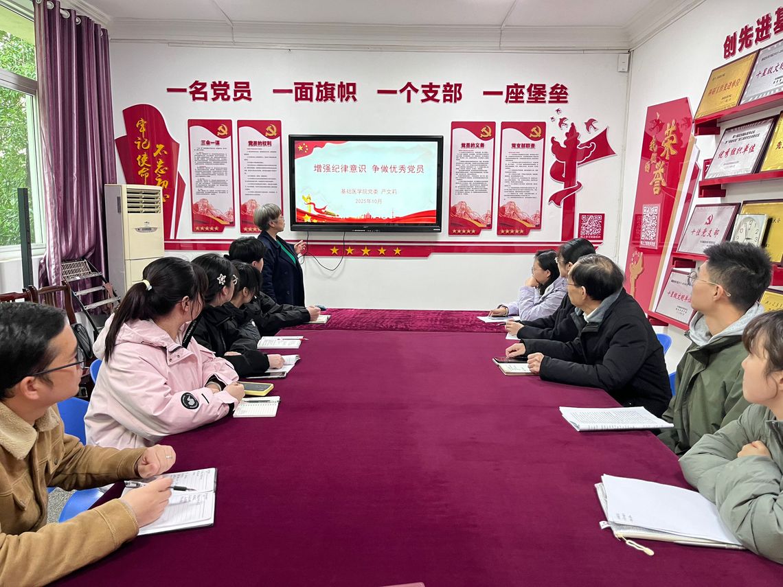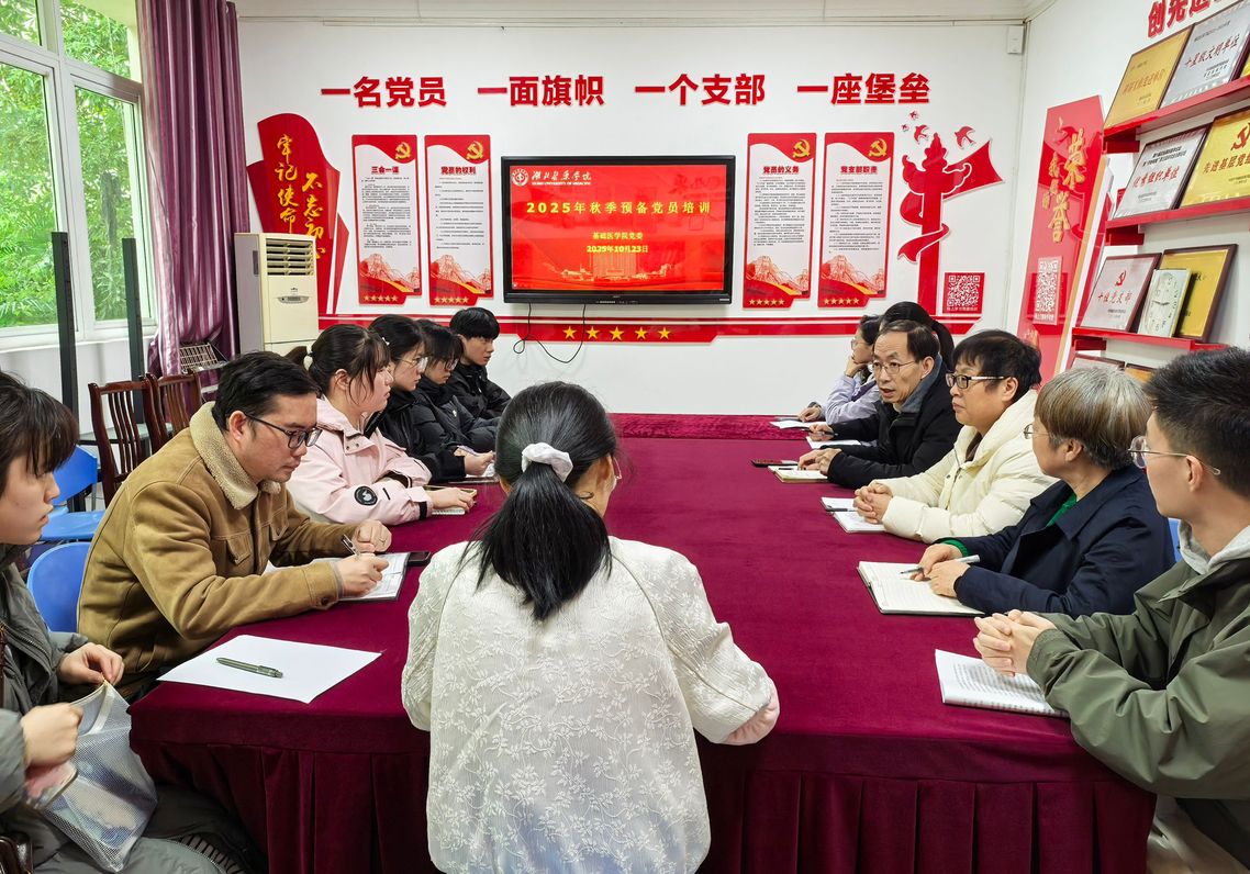 本网讯(通讯员刘小情)为进一步加强对预备党员的思想引领与理论教育,夯实党员发展基础,10月23日下午,基础医学院党委在1号楼二楼党员活动室开展预备党员集中培训活动。学院党委书记赵万红、院长张秋芳、党委委员严文莉、研究生党支部书记胡珺及全体预备党员参加了此次活动。