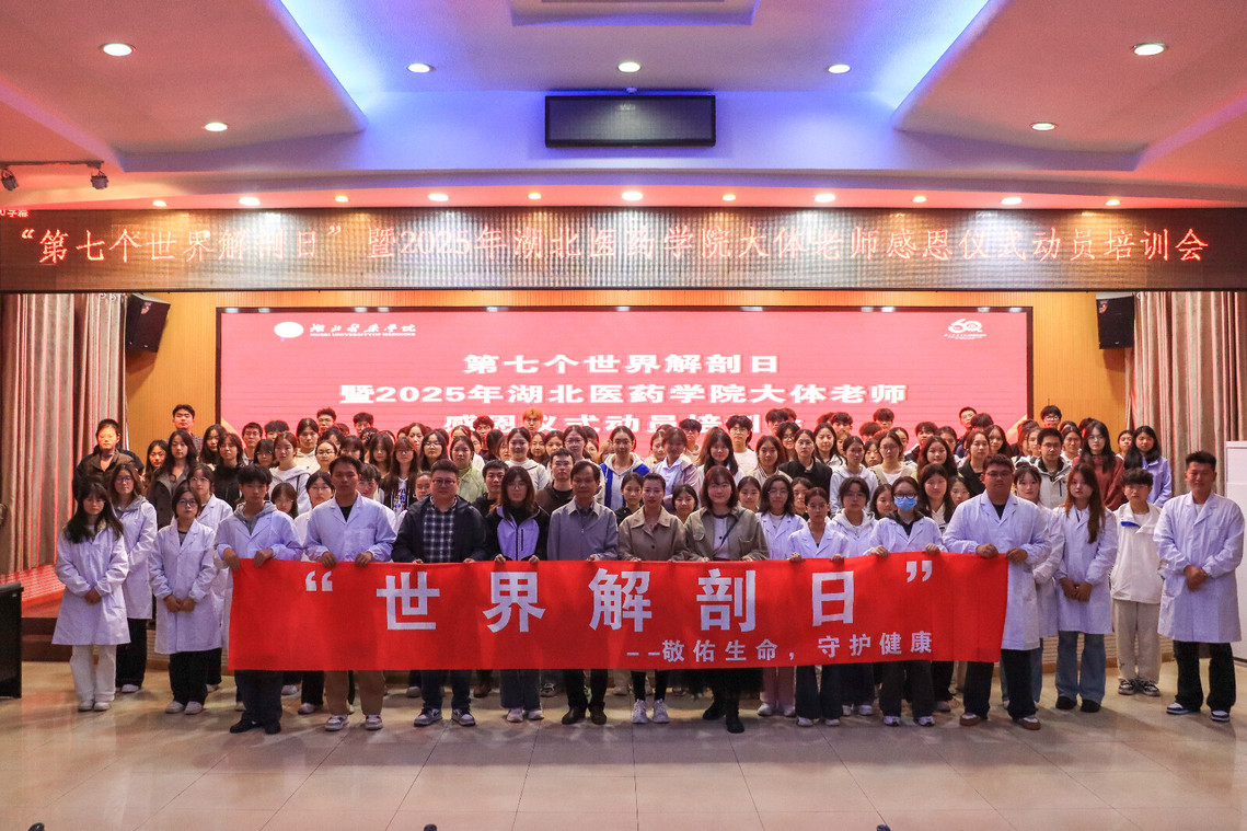 本网讯(通讯员 贾贤梁、邢安源)10月17日,湖北医药学院基础医学院在一号楼学术报告厅庄重举行“世界解剖日”暨2025年大体老师感恩仪式动员培训会。基础医学院副院长贺细菊、解剖教研室姚柏春教授、刘睿教授、形态学实验室李勇主任,与学院辅导员代表、系统解剖学班级全体学生干部及“巨鲸落・万物生”遗体器官捐献志愿服务队成员等180余人齐聚一堂,共同致敬生命的无言导师。