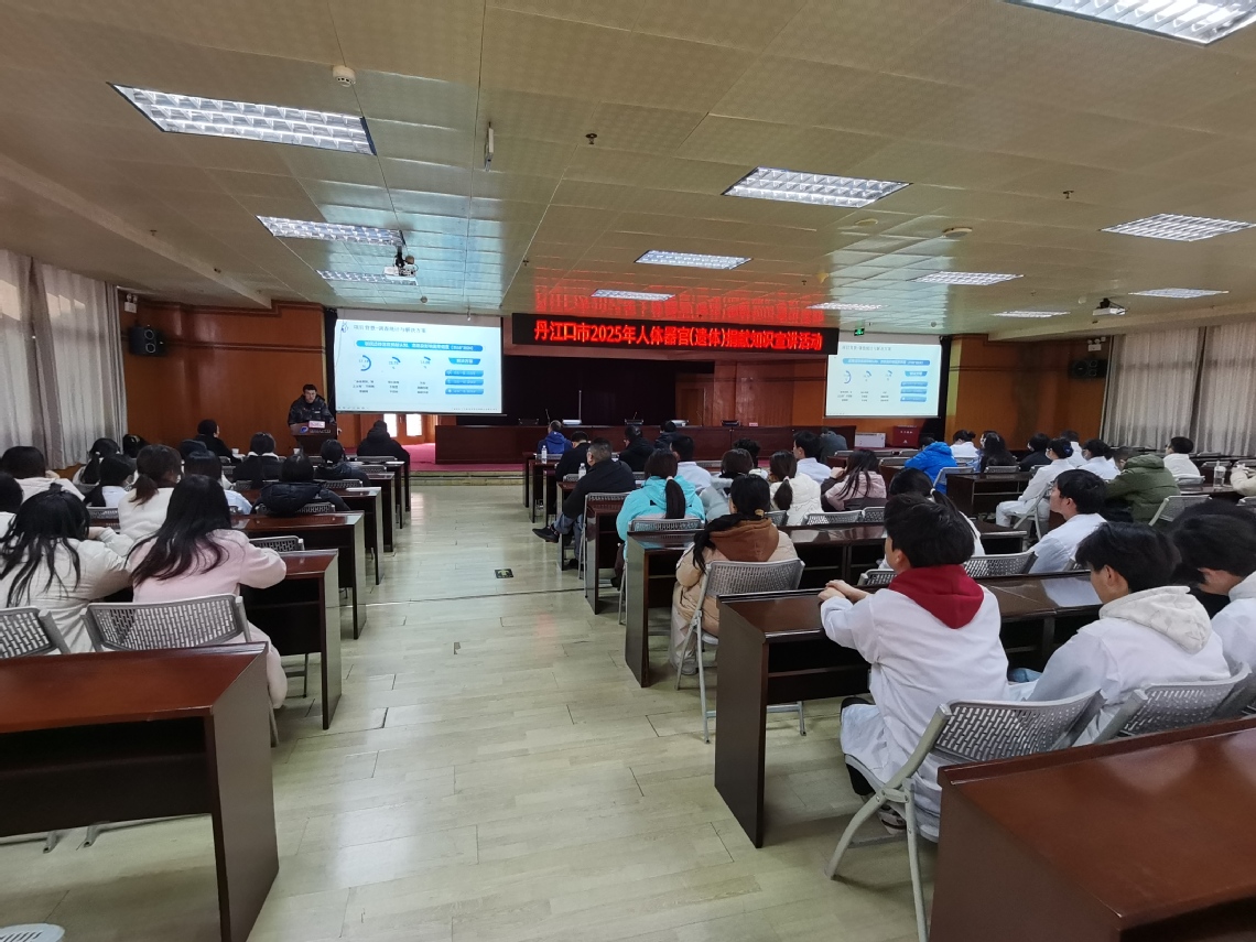 本网讯(通讯员张伟)为普及人体器官(遗体)捐献科学知识,弘扬“生命接力、传递大爱”的公益理念,推动十堰市及周边区域捐献事业健康有序发展,2025年12月17日下午,湖北医药学院基础医学院巨鲸落·万物生遗体及器官捐献志愿服务队在丹江口市第一医院19楼会议室成功举办人体器官(遗体)捐献知识专题讲座,市第一医院医护人员及相关代表共106人参加活动。
