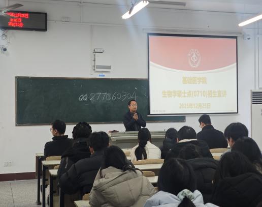 通过此次宣讲会,不仅搭建了学院与优质生源之间的沟通桥梁,也充分展示了生物学(0710)硕士点的学科实力与培养优势,为学院吸纳优秀研究生、推动学科高质量发展奠定了坚实基础。基础医学院生物学(0710)硕士点也将进一步优化培养方案,强化科研与产业对接,为生物医药领域输送更多高层次创新人才。(审稿人 刘志新)