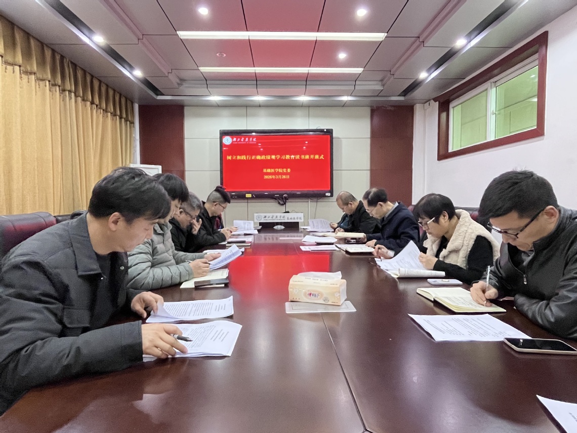 赵万红同志指出,习近平总书记关于树立和践行正确政绩观的重要论述,为新时代党员干部筑牢正确政绩观、履职尽责干好工作提供了根本遵循和行动指南。他强调,一要提高政治站位,深刻认识开展树立和践行正确政绩观学习教育的重大政治意义和现实意义,切实把思想和行动统一到党中央决策部署上来;二要增强学习自觉,精准把握正确政绩观的核心内涵和实践要求,做到学深悟透、入脑入心;三要深化学习成效,坚持学用结合、知行合一,切实把学习成果转化为推动工作的务实举措,在服务学院高质量发展、助力地方医疗事业发展中展现新担当、新作为。